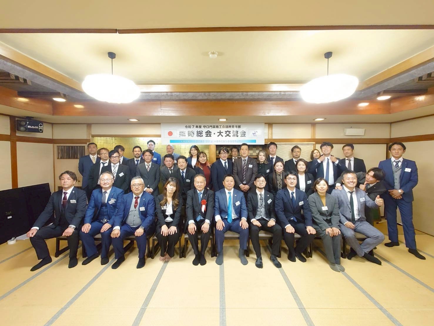 令和7年10月22日(水)料亭 柿右衛門にて、臨時総会・大交流会を開催しました。臨時総会では令和8年度会長予定者として原田千晶君が選任されました。大交流会では、ご臨席いただいたシニアクラブ会長 能美孝司様より現役メンバーへ向けた温かい激励のお言葉を頂戴いたしました。全員が交流でき、見ている人たちも飽きないゲームを企画し、終始笑いの絶えない賑やかな時間となり大盛況に終えることができました。今年度の集大成に向けて一丸となり、同時に次年度の新たな挑戦を全力でサポートできるよう、この一体感を大切にしたいと感じました。